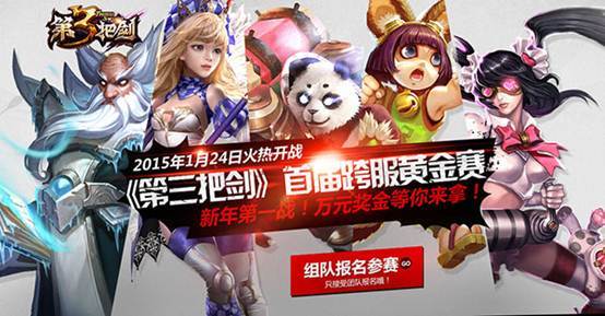亲爱的小伙伴们,《第三把剑》首届跨服黄金赛火爆来袭!高达4万元的高额奖励由谁瓜分!多种趣味奖项花落谁家!全新奖励机制,场场有奖励,累计拿大奖,冠军可拿1万8!无论你是大神还是小白,无论你是宅男还是女神,无论你是新区大神还是老区一霸,均可报名参加!为自己的服务器代言!为捍卫荣誉尽力拼一把!更何况玩一款游戏,为何不让大家都见识一下你的竞技风格,犀利也好奇葩也好,就等你一展风华!