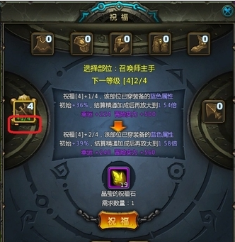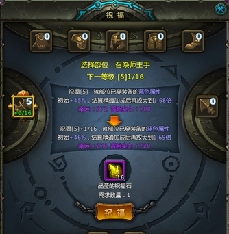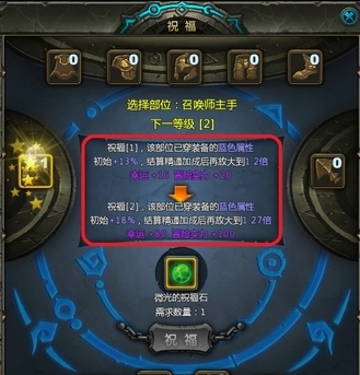 2.祝福目标:这里会显示当前选取的部位和下一祝福等级。